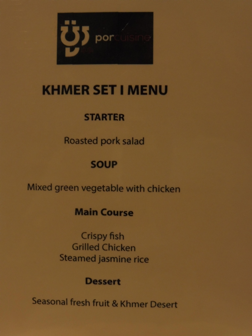 ホテルのコンシェルジュに「アプサラダンスを見ながら夕食」とお願いして予約してくれたのがPor Cuisine。ホテルの車で連れて行って貰ったのですが、場所はちょっと分かりにくそうです。