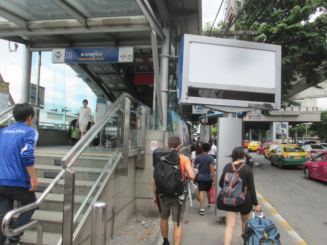 ドンムアン空港からMRTチャトゥチャック公園駅近くまでオレンジ色の車体の空港バス「A1」が運行しています。バスが停車するとすぐに駅の3番入口となります。エスカレーターが設置されており、大きい荷物があっても楽に移動できます。