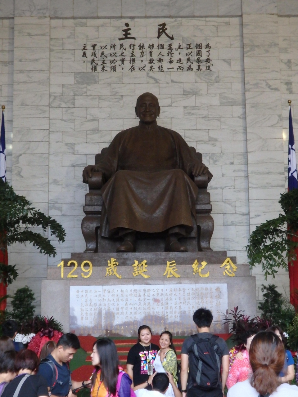 蒋介石がある銅像まで階段があるんですが蒋介石がなくたっときの年齢が89歳だったので数え年の90歳の段数があります。