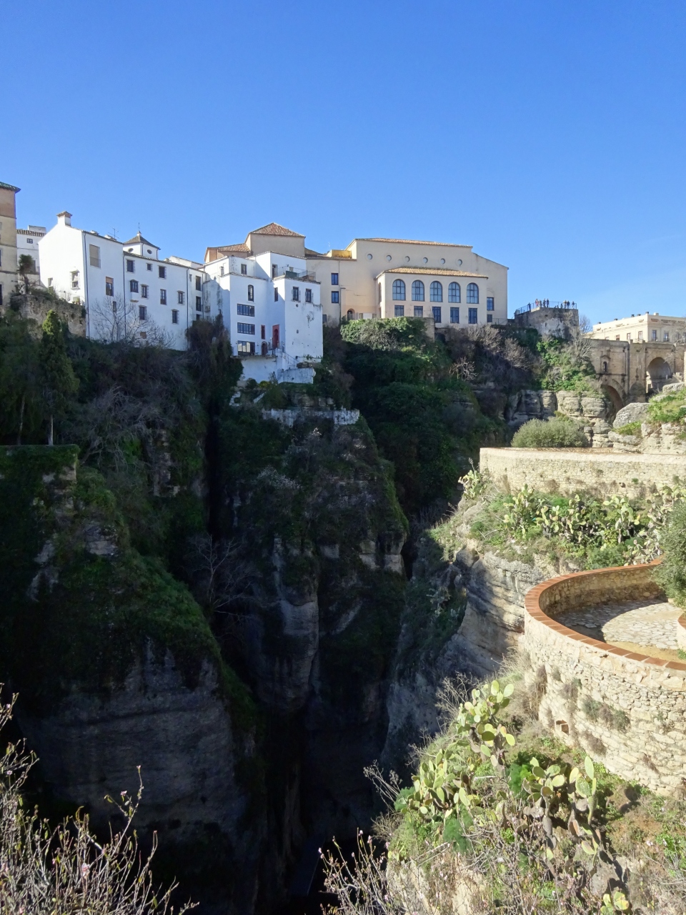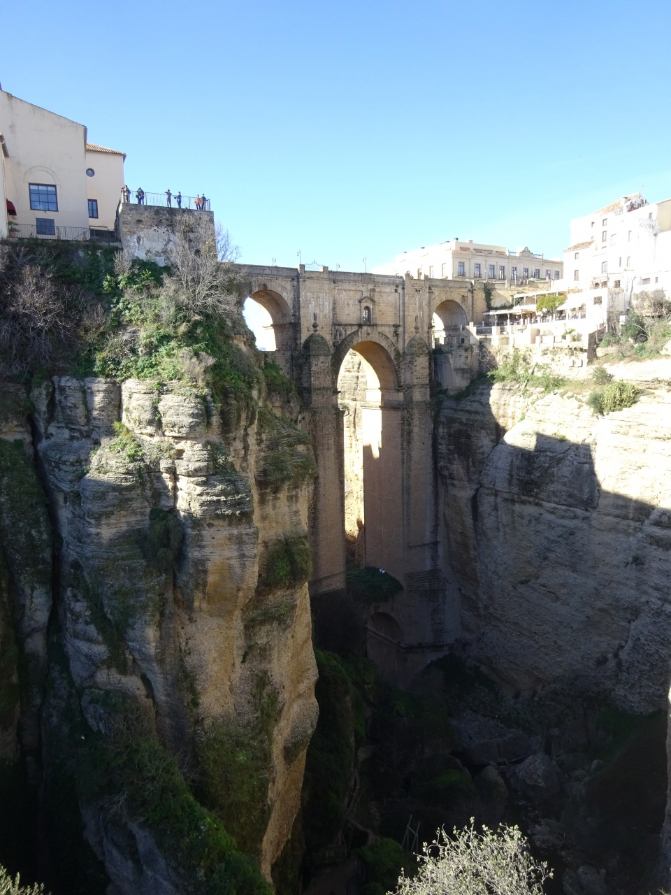 ヌエボ橋を渡り旧市街に入ったらすぐ左に曲がり、ビエホ橋方面に降りていきます。ビエホ橋を渡ると左に小道があり、ここを上っていくとヌエボ橋を見上げるような場所に出会えます。ここから新市街を抜けて再びヌエボ橋のたもとに戻ってこれます。
