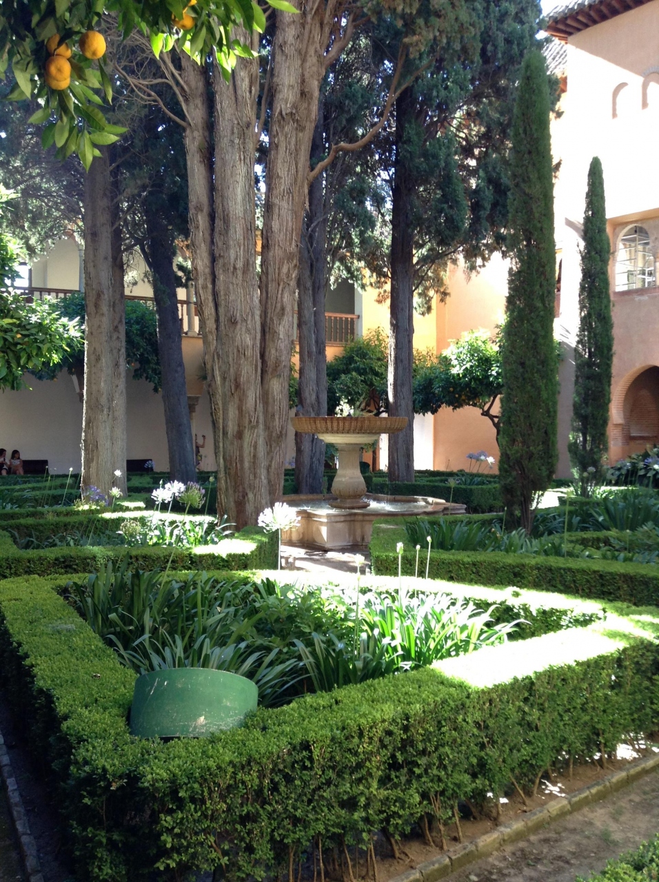 あまり日は射してなかったので少し暗い感じでしたが、中央に噴水があり、
