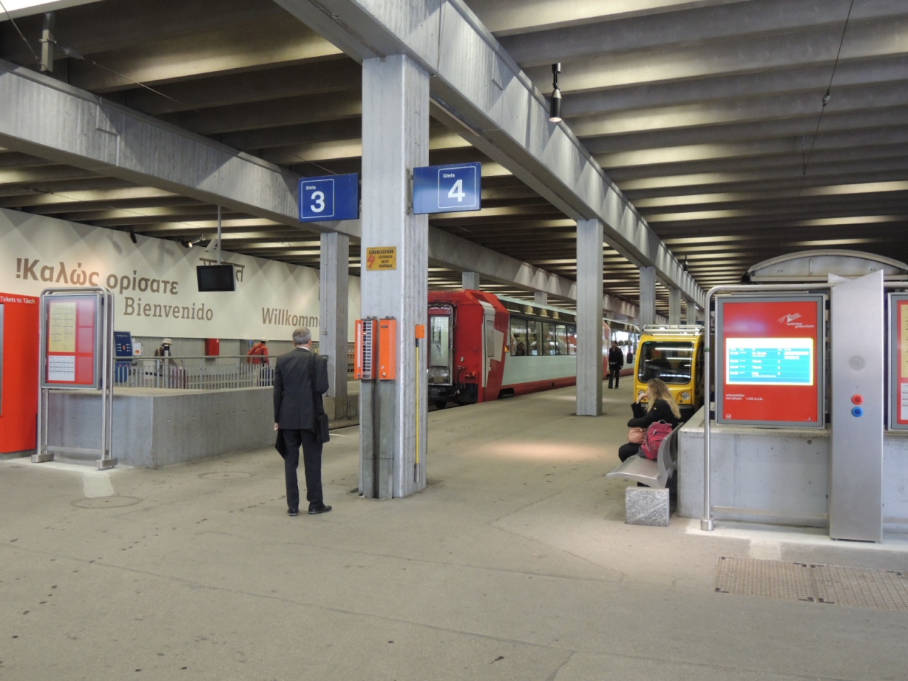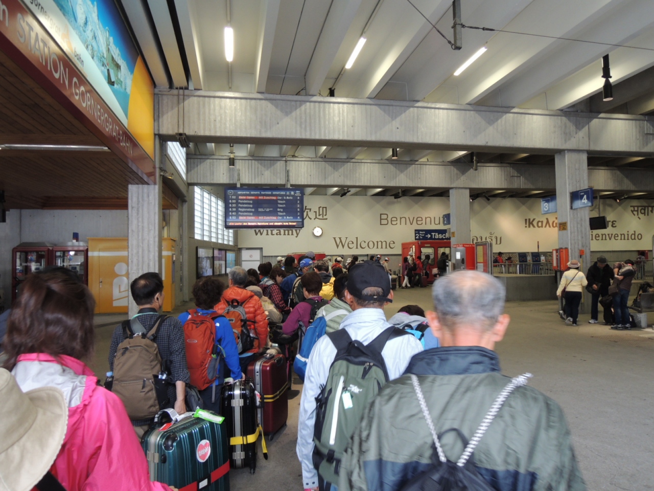 H社のツアーでテーシュからMGB鉄道でツェルマット駅に到着したら、駅の壁面いっぱいに世界各国の言語で「歓迎」の言葉が書かれていました。「Welcome」「ようこそ」「Bienvenido」「Willkommen」・・、世界中の旅行者が来ているのだなぁと実感しました。