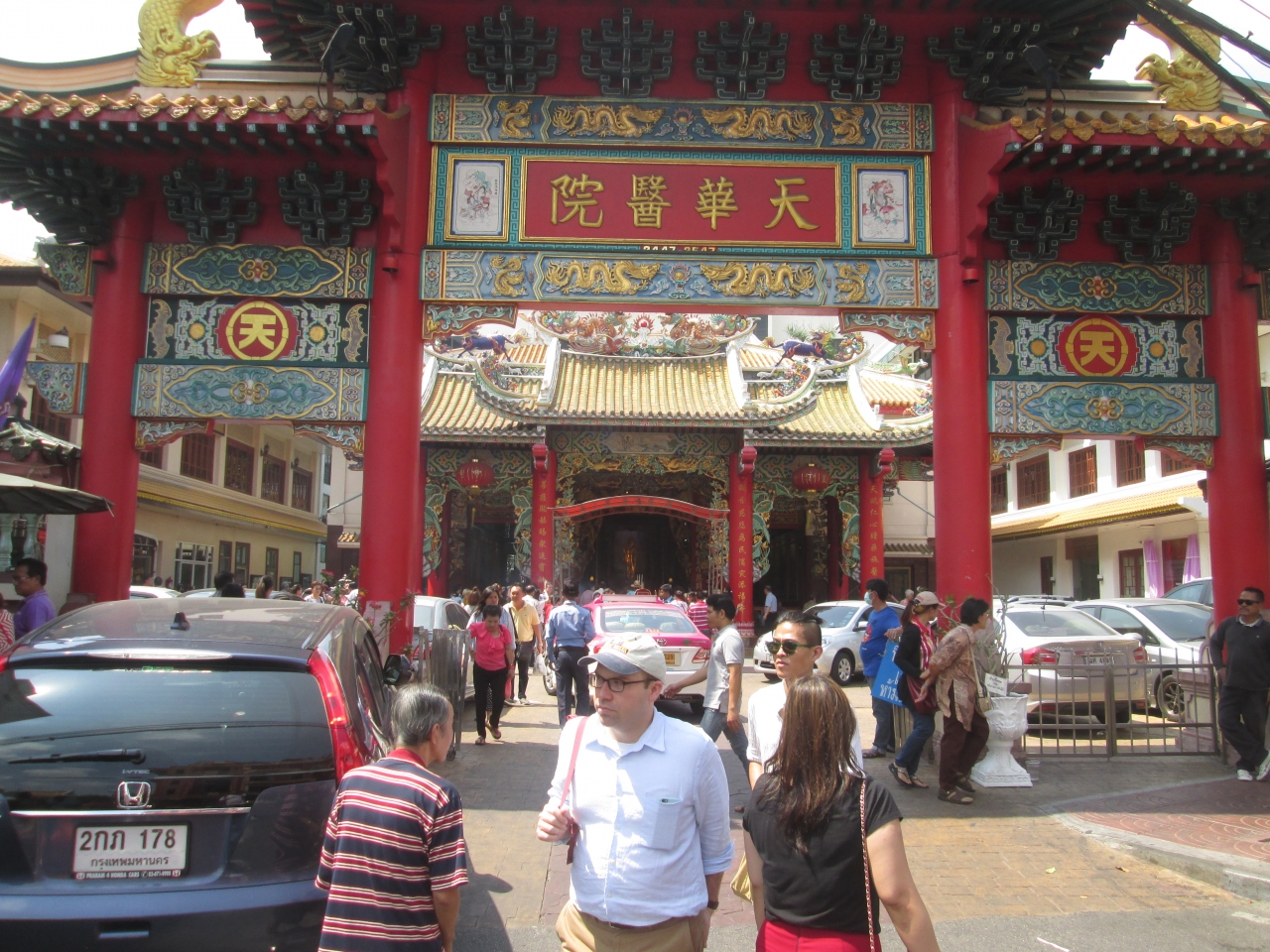 ヤオワラート通り沿いにある中国風の神社です。朱色と金色の境内、門になっています。中国の神、関羽(Guan Yu)は、1900年前に実在した武将で、その武将を崇拝しているバンコク在住の中国人が熱心に参拝しています。