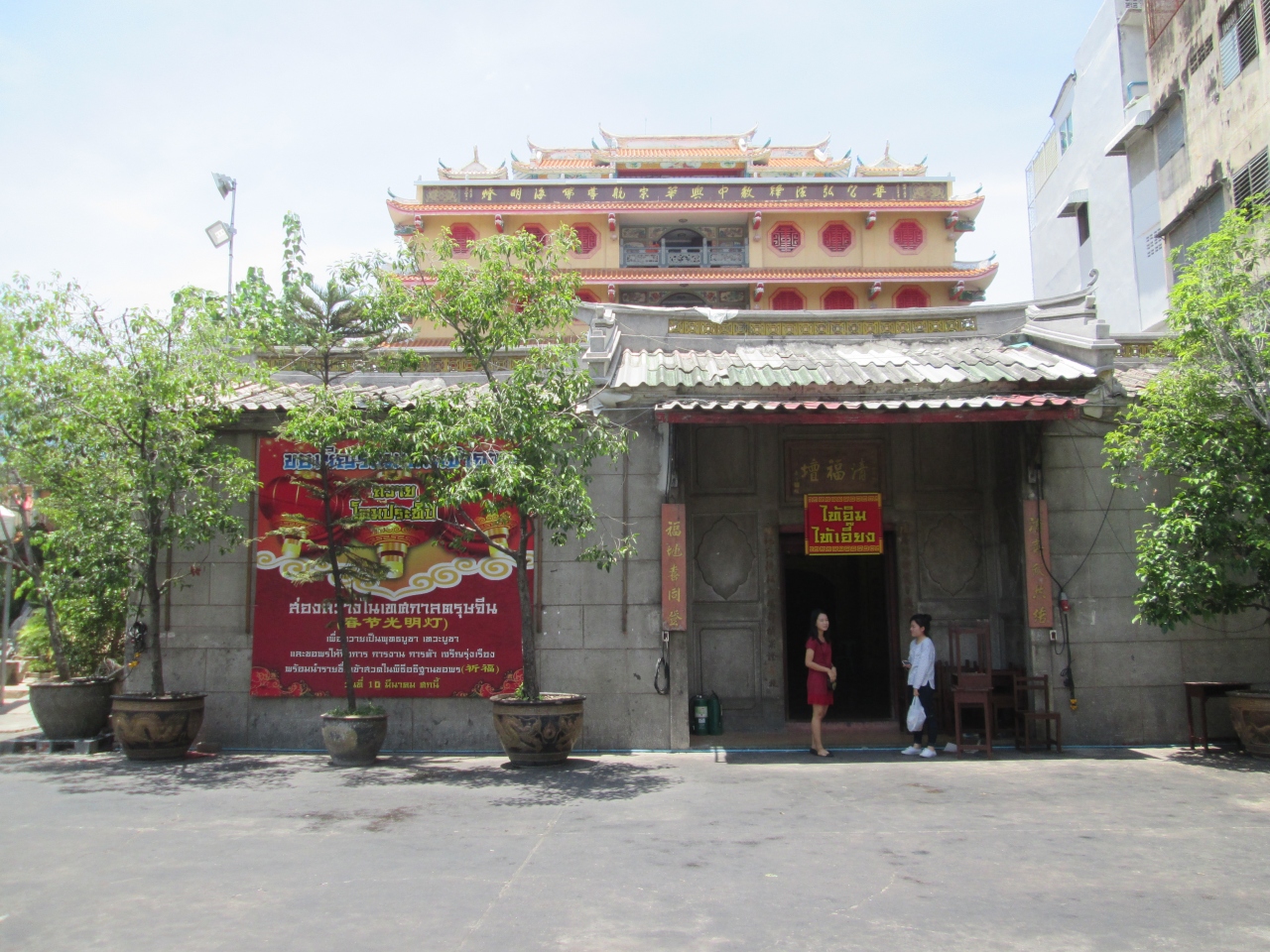 チャルンクルン通り沿いにある中国風の神社です。朱色と金色の境内、門になっています。1871年に建てられたバンコクでもっとも古くて有名な中華系寺院です。ワット マンコーン、または、ワット・レンノーイーの名で知られています。
