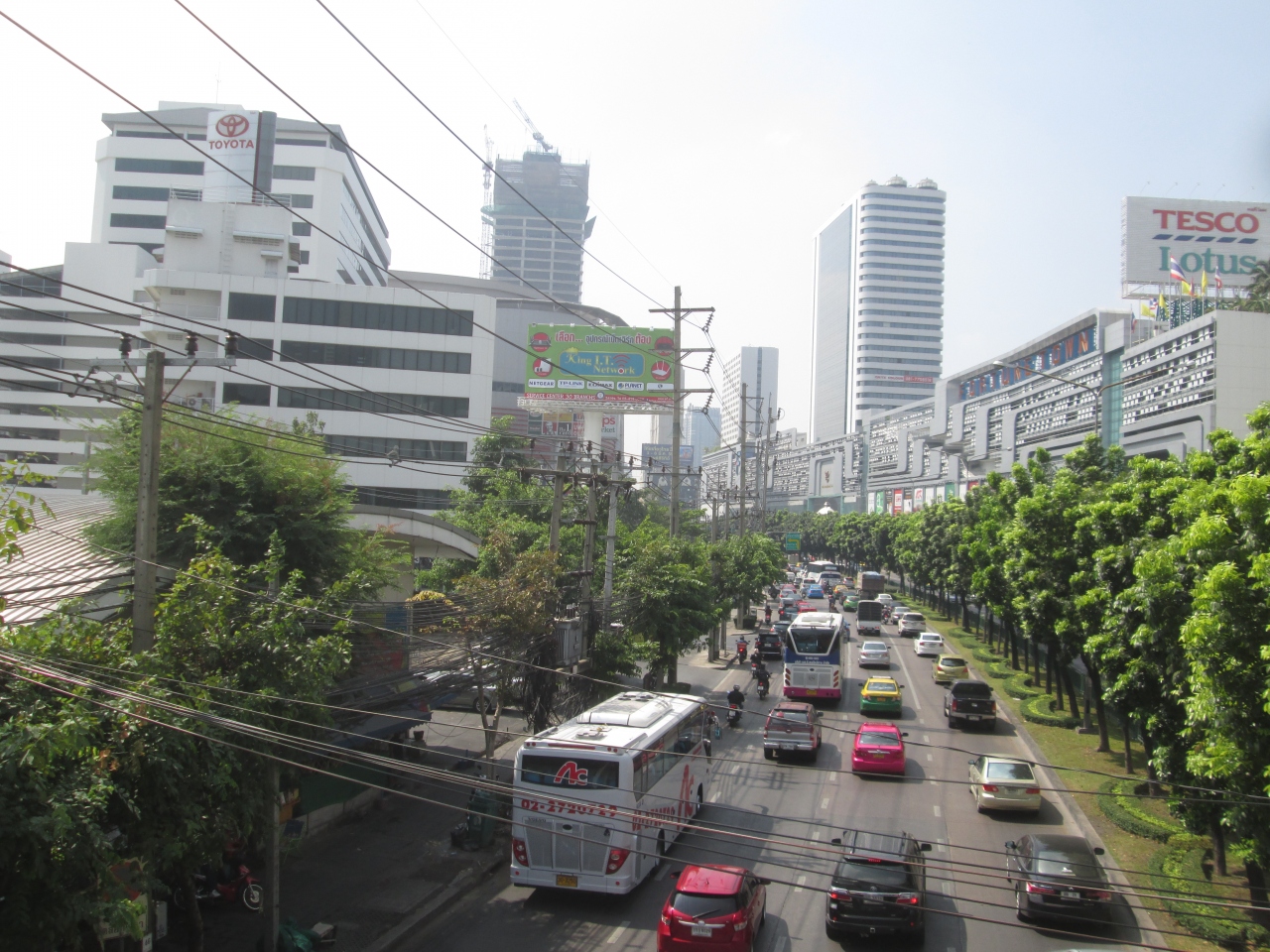 バンコクの主要道路の一つです。道路の下に地下鉄が走っており、道路の両端にはショッピングセンター、レストラン、バー、屋台、マンション、コンドミニアムが並んでいます。このため、車、人の通行が多い通りです。
