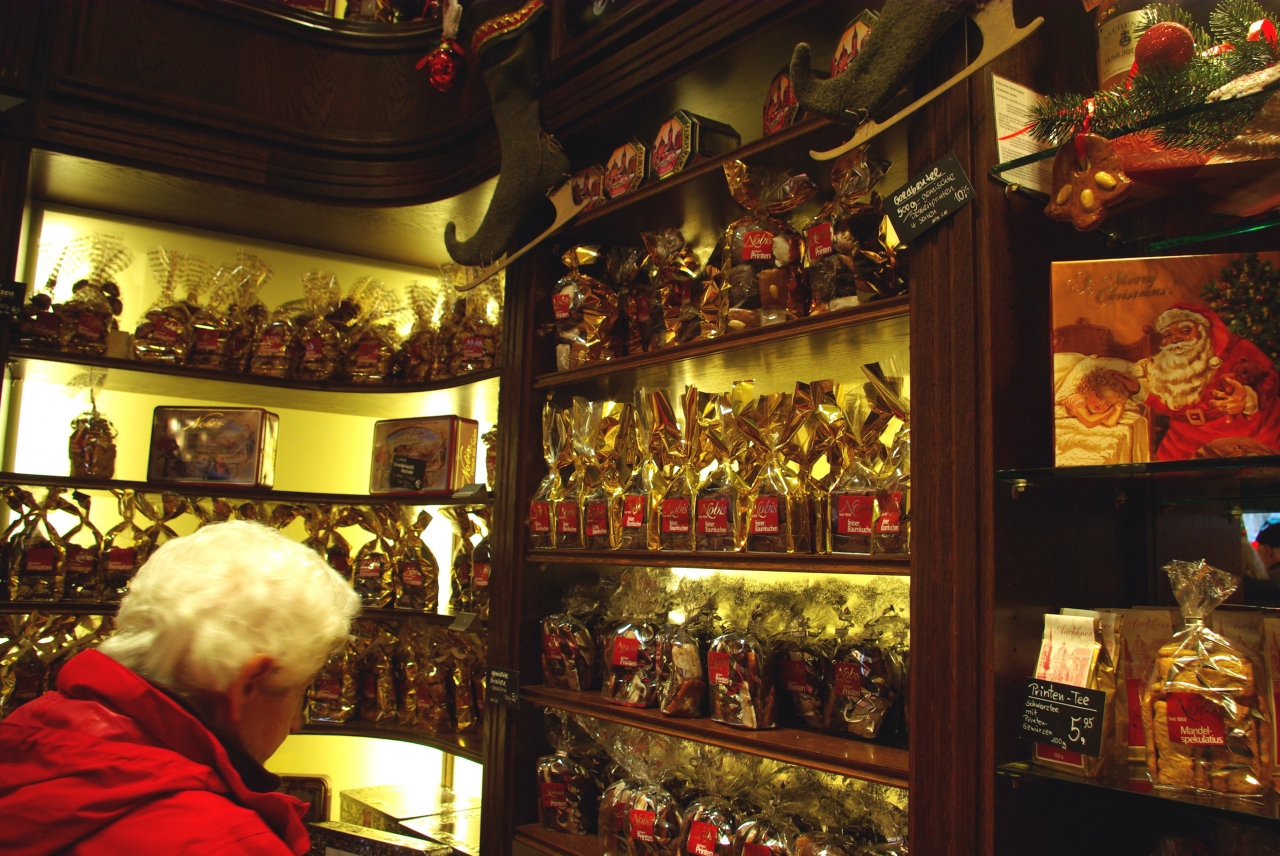アーヘン大聖堂のすぐ前にあり、角地なのですぐにわかります。ディスプレーに居並ぶお菓子の数々を見るだけで、ウキウキした気分になれます。焼き菓子中心のお菓子全般が売られていて、クリスマスならシュトーレンをどうぞ。カウンターの上に並べて待っています。隣のパン部門と店内で繋がっていて、イートインにもなっているので、そちらも大混雑。並んでいても、テキパキとさばいてくれるので、安心して買うことが出来ます。