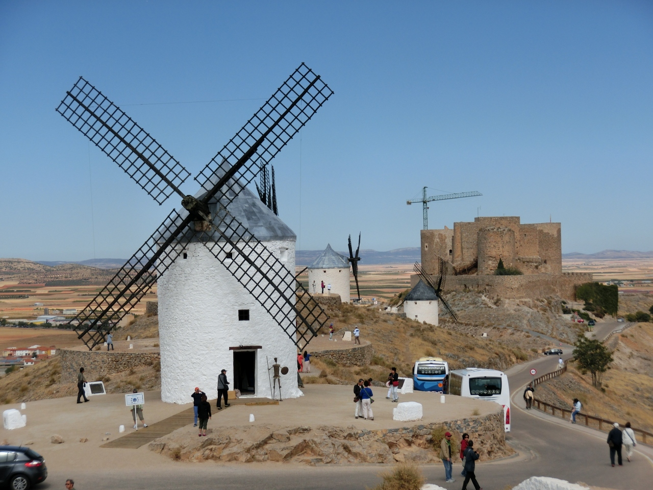 なんといっても遠くから見るこの城と白亜の風車群の姿は壮観。まさに「ドン・キホーテ」の世界を目の当たりに見るようです。