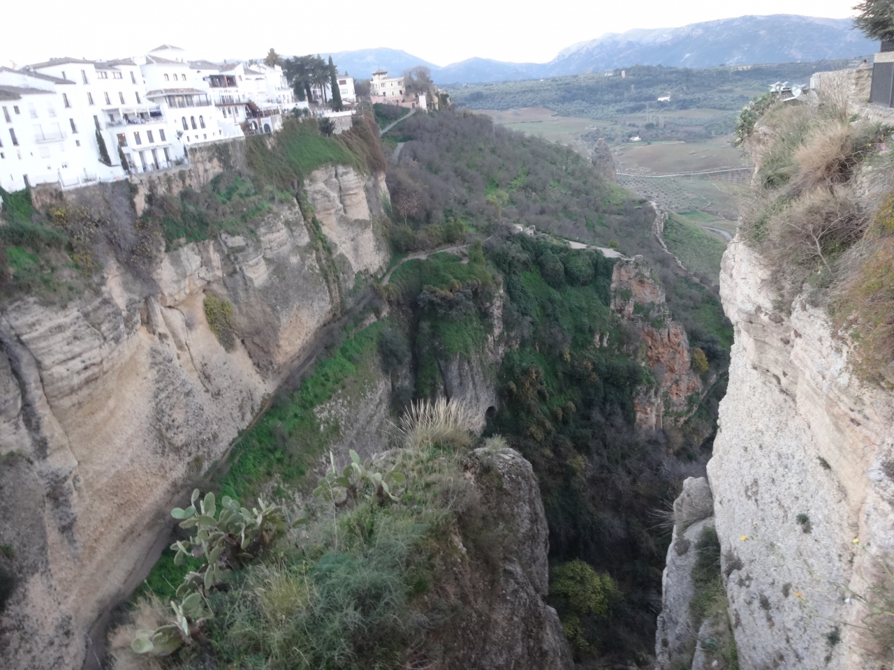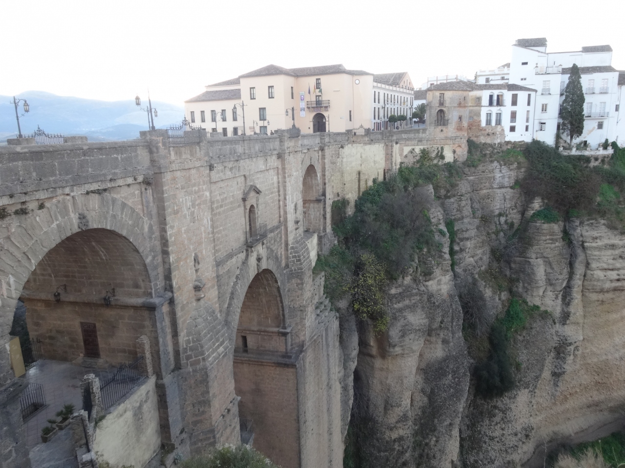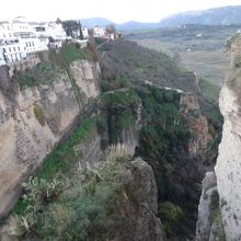 ガイドブックの紹介ページでロンダの写真でみたこの橋と渓谷、街をぜひ訪れたいと思いました。旧市街と新市街を結ぶ石橋の眺めは、新市街側、橋手前の右側のバラドールの通路からが全体的に見えて素晴らしい。奥の公園へとつながる通り道でもあるので自由に歩ける。橋を渡って左側には展望エリアがあり、渓谷と街の高さが実感できる。
