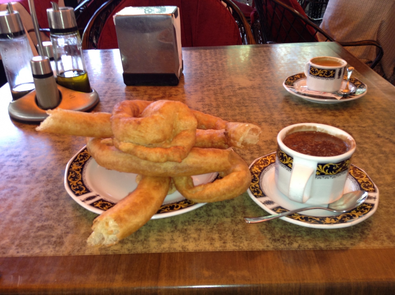 以前スペインに来てチュロスを食べた時も思いましたが、本場のチュロスはあまりチョコレートも甘くなく