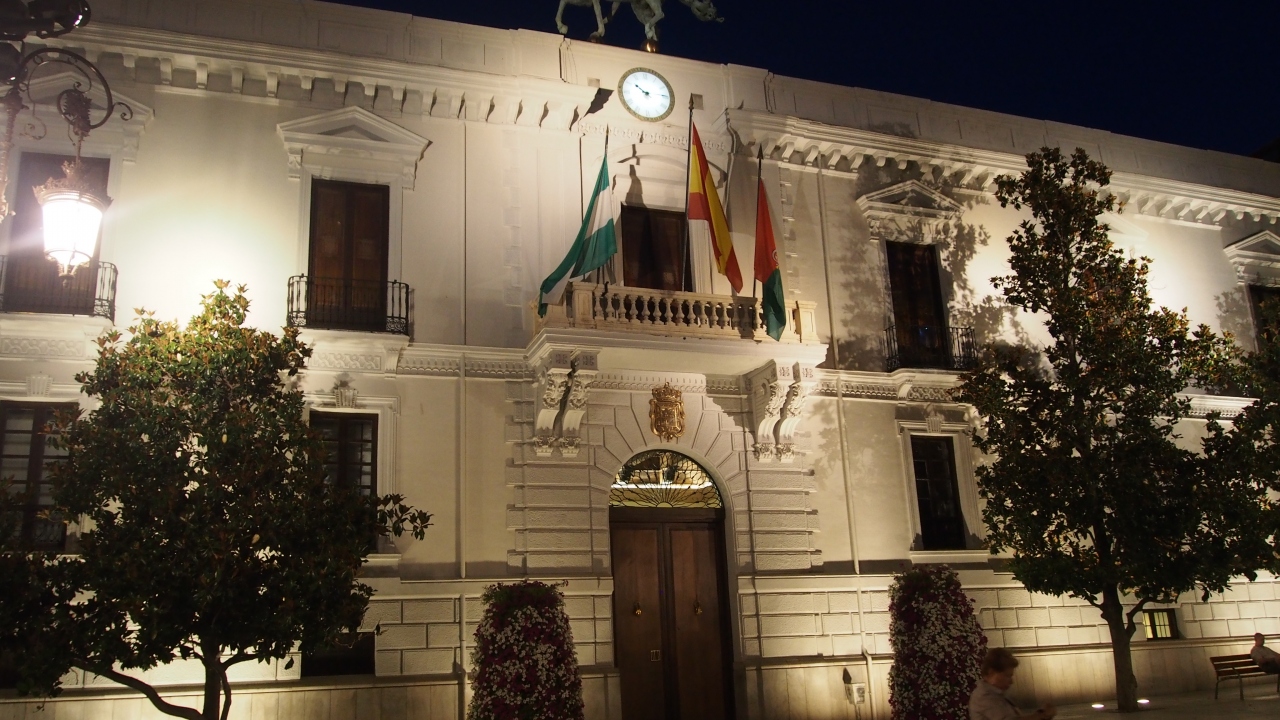 バルが立ち並ぶナバス通りのすぐ手前にある建物が市庁舎です。