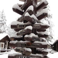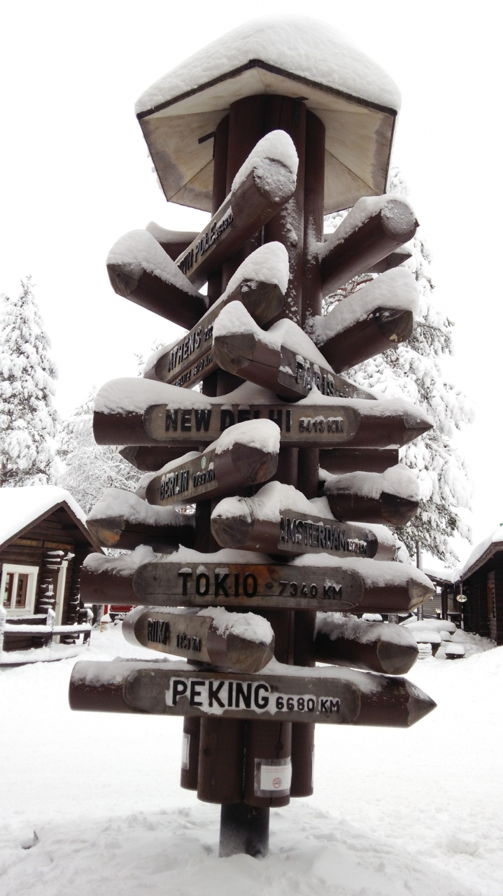 サンタクロース村へ行くバスのバス停はあちこちにあるけど、街を色々見ながら歩き、ラップランドサファリ社前から乗りました。すでにバスには結構人が乗っていたので、座れない人もいます。