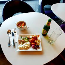 2014年に中に入ったときは特に食べ物が貧弱に感じたが,今回はつまみやスープもあり,フランクフルト空港のセネターラウンジ並みだったと思う.最近ラウンジの質が落ちてきている(特にビジネスラウンジ)向きがある中ではうれしい限りだ