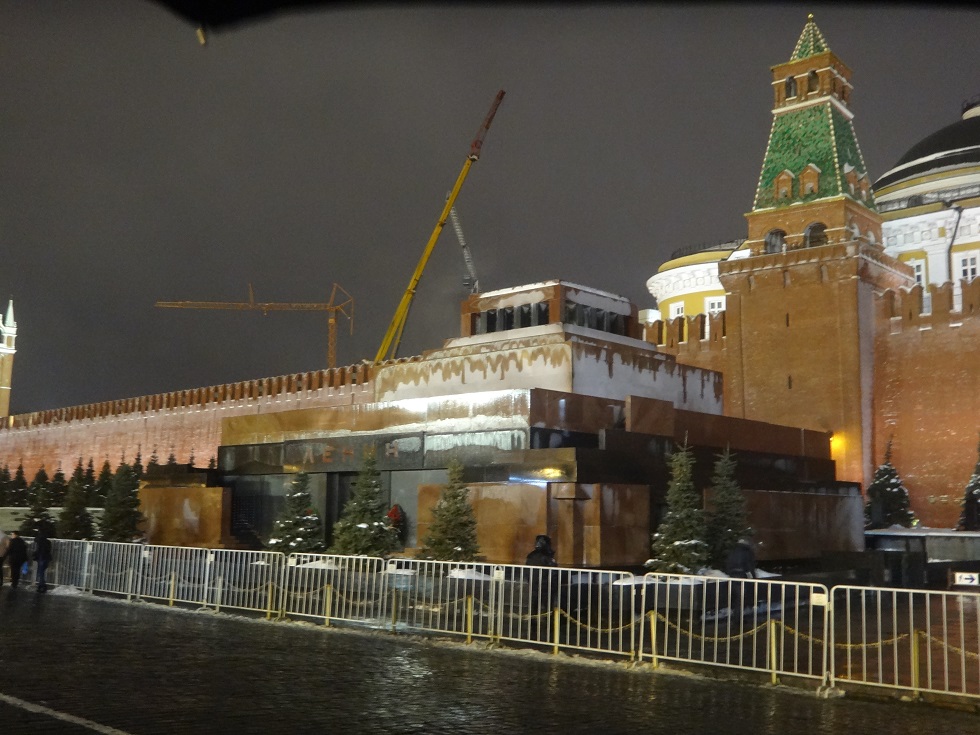 レーニンの遺体が安置されているのですが、内部を見られる時間帯が限られているので、見られる時間帯になるとかなりの行列になってしまい、なかなか見られないというのが実情のようです。自分もその時間帯にはあわなかったので内部までは見られませんでした。珍しいといえば珍しい種類の廟なので、一見の価値はあると思います。