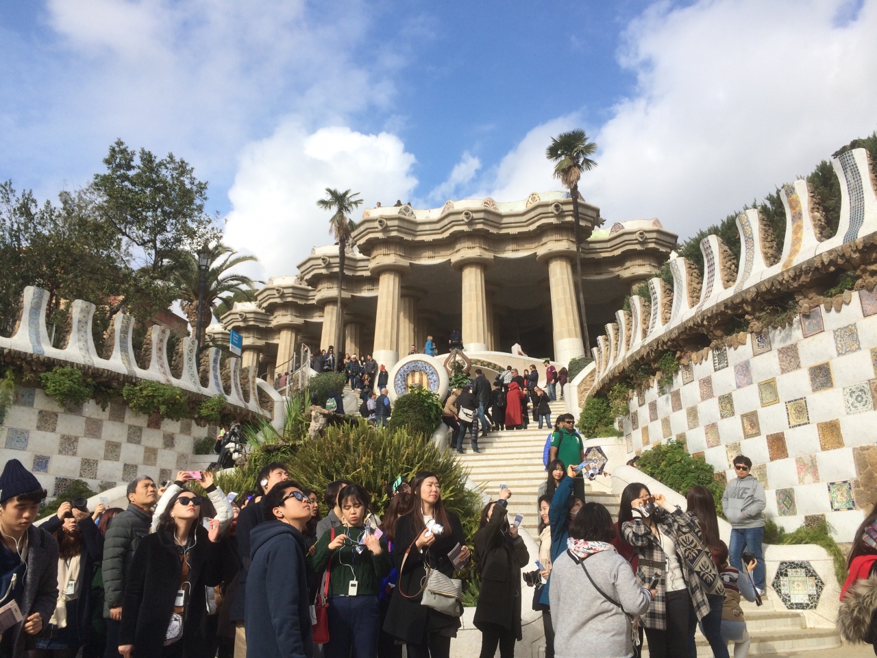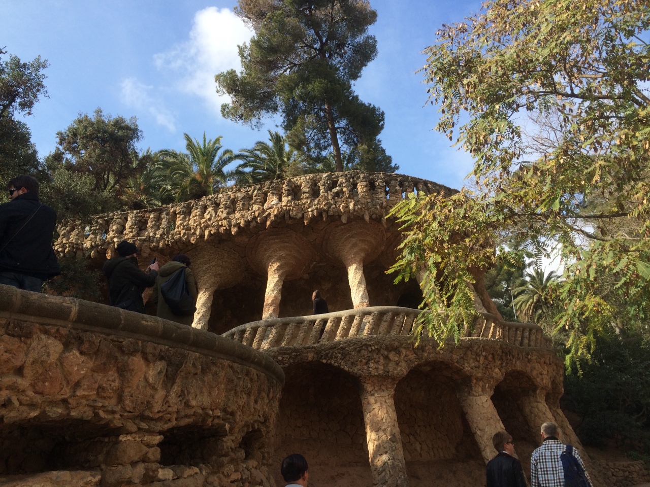 バルセロナの山の手にあるガウディ作の世界遺産、グエル公園が作られたのは1900年から1914年にかけてのことです。当時のブルジョワ階級向けの分譲住宅として建設が開始しましたが、60軒建てる予定だったものが結局、3軒のみ完成しただけで、計画は中止となってしまいました。市の中心から、あまりに離れすぎていてブルジョア達が関心を示さなかったことと、市民戦争の勃発でパトロンのグエル伯爵自体がそれどころではなくなってしまったのが原因でした。後に、未完のまま市に買い取られ、公園として公開され、現在に至っています。お菓子の家のような管理人棟、破砕タイルのオブジェ、86本の柱で支えられた多柱造りの市場、人体工学に基づいた曲線のベンチ、サーフィンのパイプラインのような通路などなど、まるでガウディ版テーマパークのごとくガウディワールド炸裂です。ガウディが父親と共に一時住んだこともある家が、ガウディ記念館として公開されています。