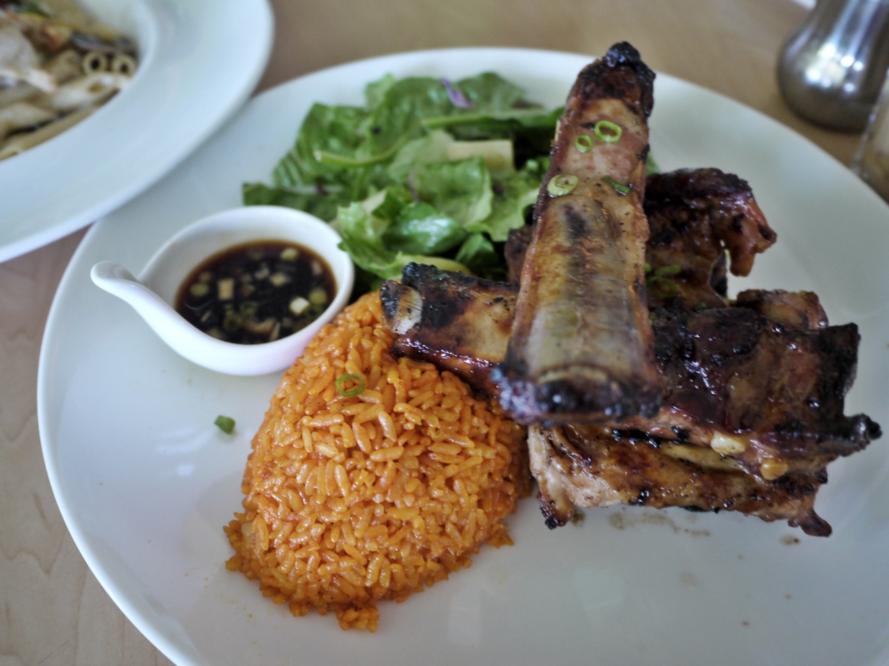 地元料理ということですが、BBQはそこそこ美味しいです。赤いご飯はあまり美味しいとは思いませんでした。