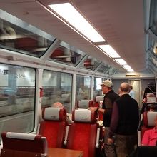 ツェルマット~サンモリッツ間の約270kmを8時間かけてゆっくり走る列車です。別名「世界で最も遅い特急」とも呼ばれています。スイスの雄大な景色を時間をかけて楽しむことができます。新フルカトンネル完成後は、ローヌ氷河を車窓から目にすることができなくなりました。終点ツェルマット駅に到着する数分前に天気がよければマッターホルンが突然見えることがあります。必ず予約をしてください。