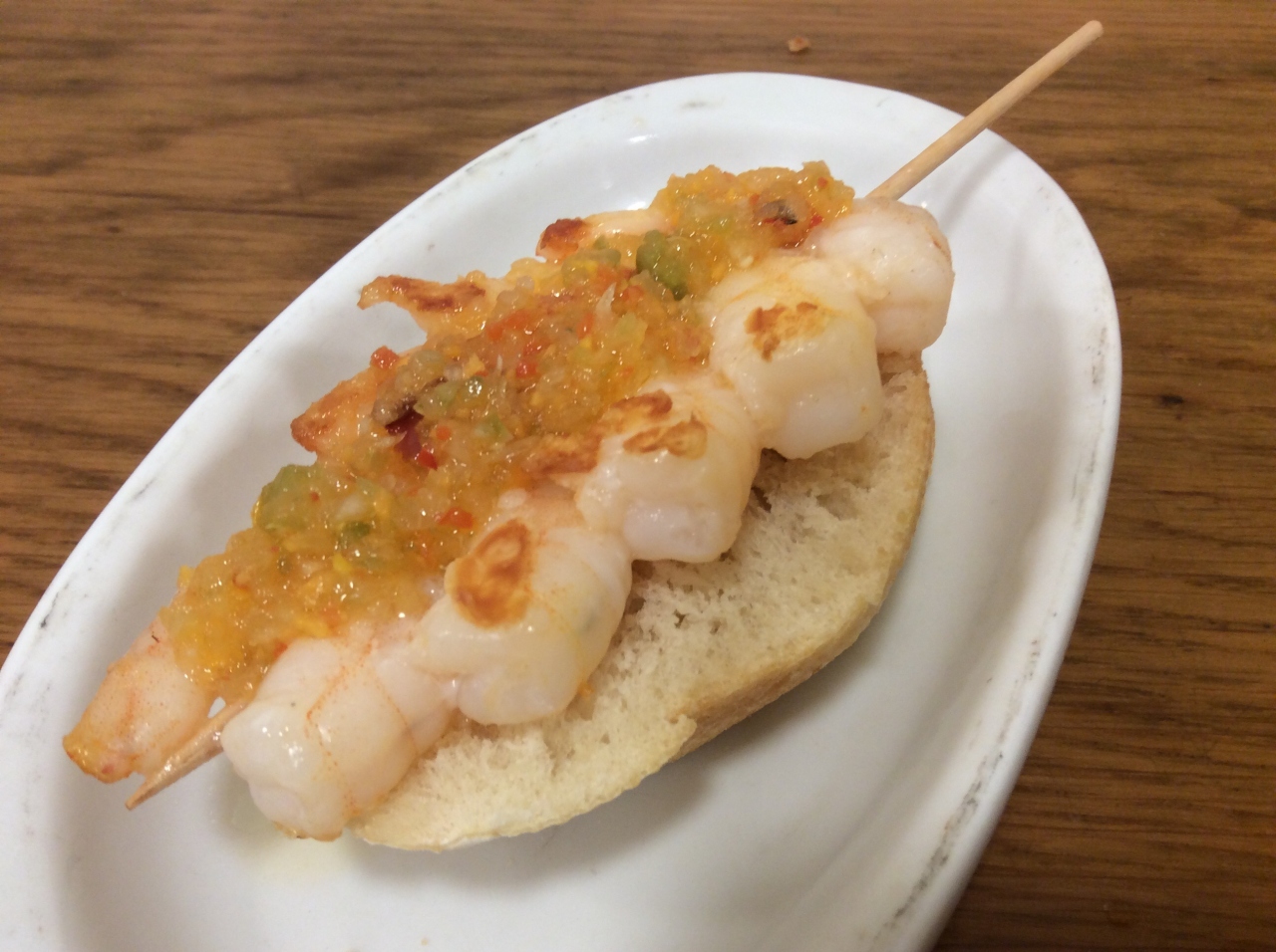 人気のあるエビのピンチョスと、気になった牛の血のソーセージを注文