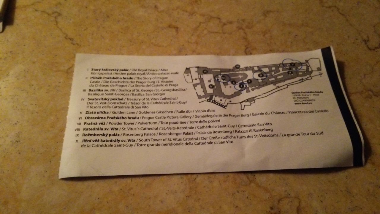 ショートツアーを購入すると、店員さんが、チケットの裏にあるプラハ城内マップにマルをしてくれて「このチケットでは、ここに入れるよ」と教えてくれました。