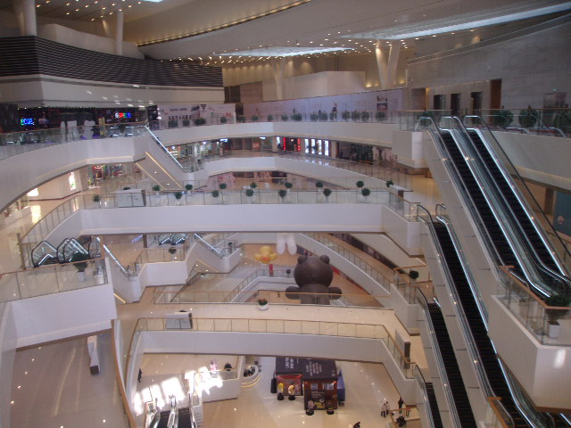 オリンピック広場の南側、かつては陸上競技場(?)があったそうですが、そこが再開発後に建てられたのがこちらの巨大ショッピングモールです。どうやら私が訪問した(2016年1月)一か月ほど前にオープンしたばかりだったようで、この時は非常な賑わいを見せていました。6Fにはフードコートもあって、色々な料理が楽しめるようになっていたり、4Fにはスケートリンクまであったりと、最近の中国の繁栄を物語るかのような迫力ある館内のショッピングモールだなという印象でしたが、オープン間もないこともあって、私の訪問時は、まだパーティションで隠された状態の店舗も多数見られました。