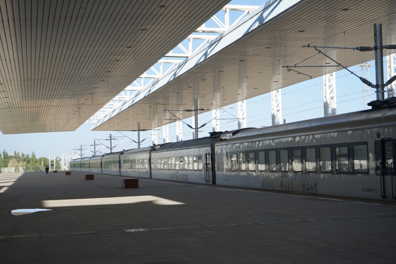 敦煌市内から車で15分程巨大な敦煌駅に到着します。平成18年に開業した敦煌駅、近代的な駅で駅構内に入るときは空港並みの荷物チェックがあります。