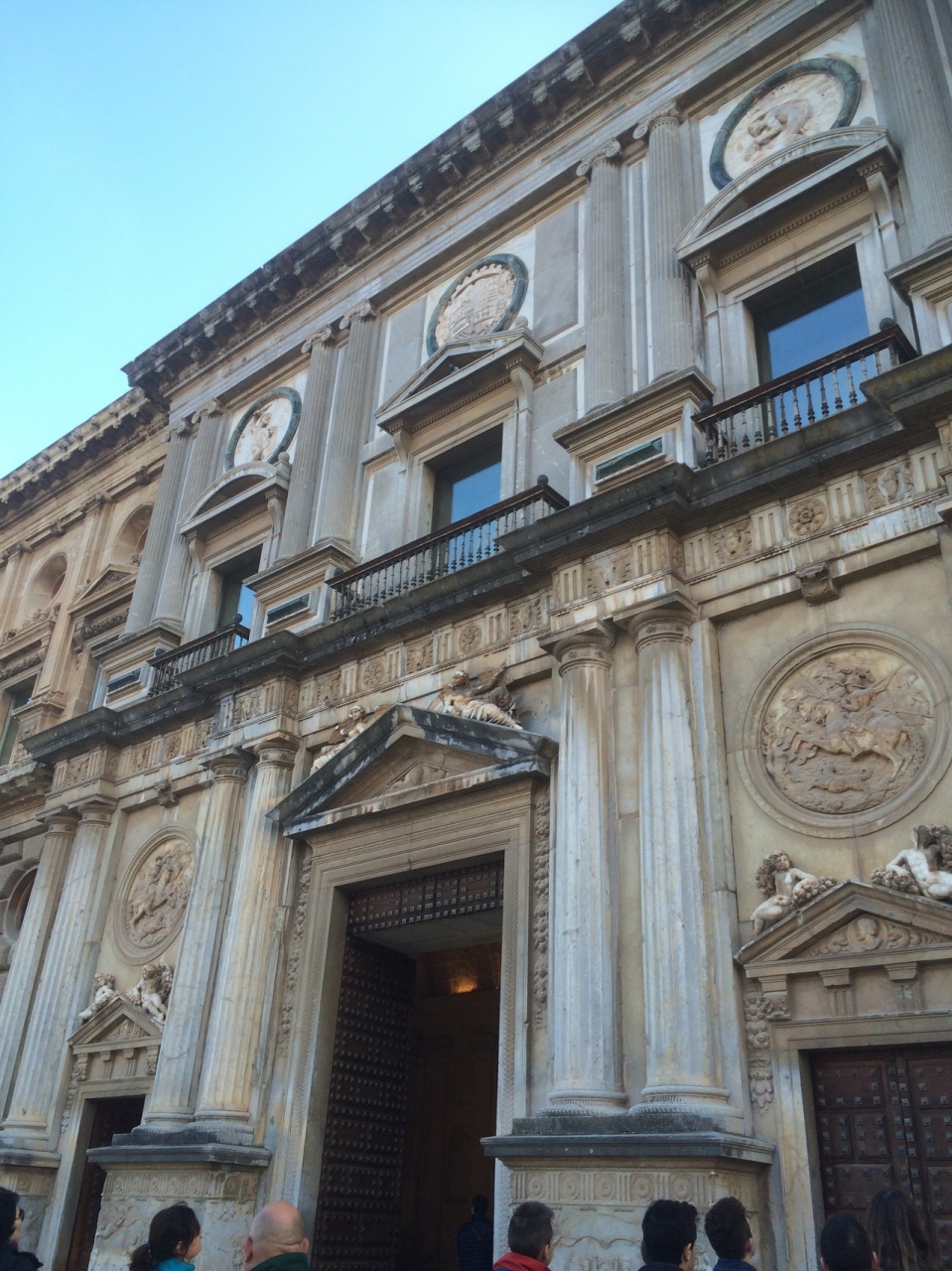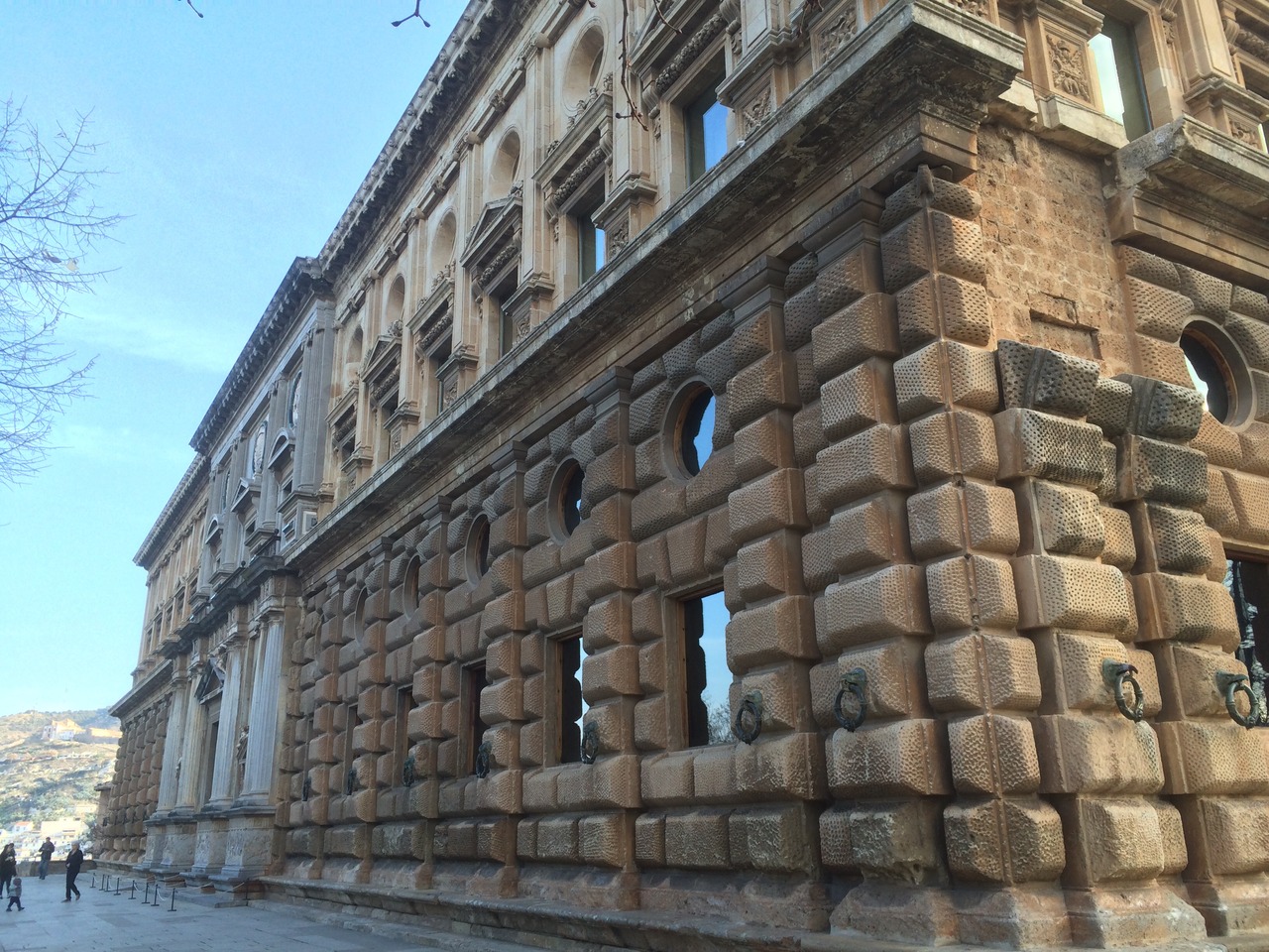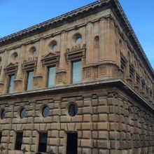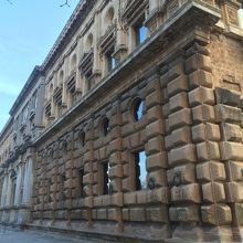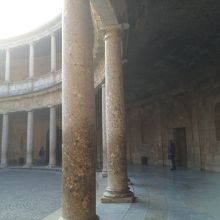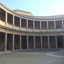 イザベル女王の死後、跡を継いだのは次女のフアナ王女でした。しかし彼女が精神に異常をきたしたため、1516年、16歳だった長男のカルロスがスペイン王に即位し、カルロス1世となりました。3年後、彼はカール5世として神聖ローマ帝国の皇帝にも即位しました。1526年、カルロス1世はポルトガルのイサベル王女と結婚します。新婚旅行でグラナダを訪れ、アルハンブラ宮殿に泊まりました。アルハンブラが気に入った彼の命によって、このカルロス5世宮殿の建設がはじまりました。ルネサンス様式でつくられた正方形の建物の内部に1階はドーリス式、2階はイオニア式の列柱に囲まれた円形の中庭を設けました。いる。設計したのはミケランジェロの弟子だそうです。中庭は音響効果が抜群とのことで、毎年、夏に開催されるグラナダ国際音楽祭の会場にもなっています。現在、1階部分が美術館として利用されています。