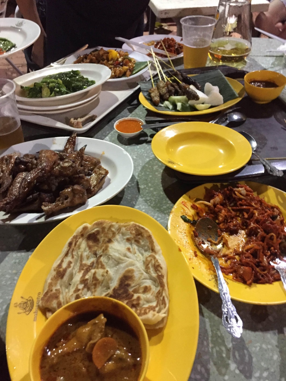 アジア料理のおいしいホーカーが出店しているので有名な名物料理はそろっています。とても賑やかで混んでいるので、早めにいかないと席を確保するのに待たされる可能性が高いです。お料理は$7前後なので、大人数で行ってシェアするといろんなメニューが楽しめていいと思います。