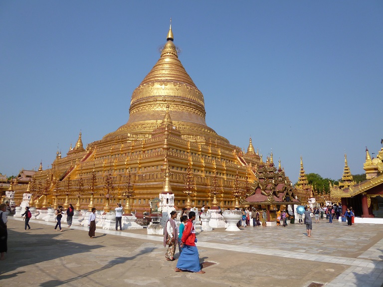 宿を取ったニャウンウー村にある巨大な寺院で、多くの参拝客でいつも賑わっています。金箔を貼った巨大で太っちょの仏塔に向かって礼拝しお経を読む信徒の姿など、この国では宗教が生活の中に如何に深く浸透しているか目の当たりにすることが出来ました。