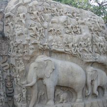 マハーバリプラムの岩山に幅29m、高さ13mの巨大な彫刻があります。