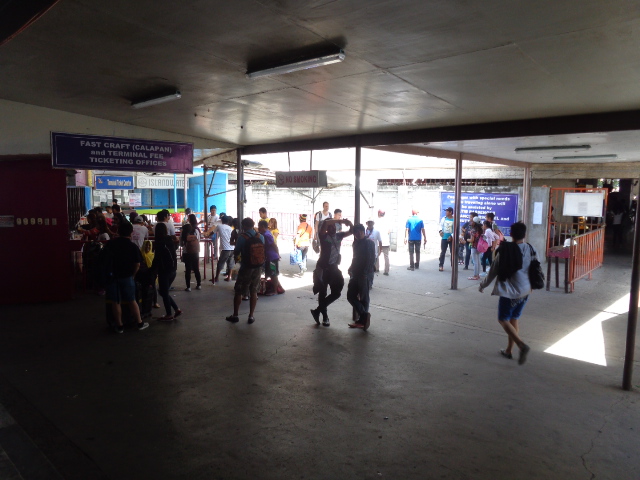 マニラのヒルパヤットからJAMなどのバスでだいたい2時間くらいです。港周辺には食堂施設が見当たらないので、食事どきに着かないような計画が良いかと思います。