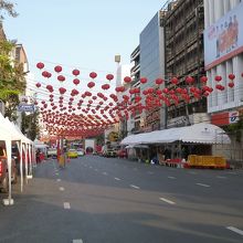 バンコクの鉄道駅フアラムボーン駅から西に広がるチャイナタウンのメインストリートです。通りには中国語の看板があふれ中国式の廟なども建っています。丁度春節ということで赤いランタンの飾りつけがされ、銅鑼の音が今にも聞こえて来そうでした。