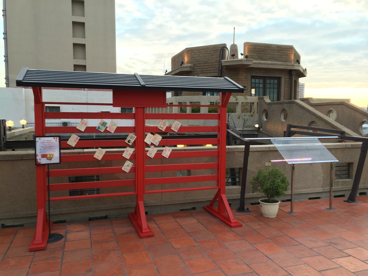 屋上にはお社が。絵馬は店内で2千元以上買うと貰えます。