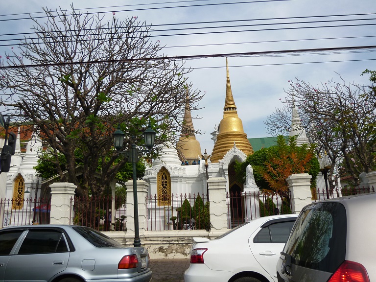 ワットプラケオやワット・ポーからすぐそば、歩いて5,6分の距離にある仏教人です。内部の装飾などに欧州の影響が色濃く見られる寺院ですので、時間があれば訪れても面白いと思います。この界隈はフアルンボーン駅からの地下鉄延伸工事が行われているため、慢性的な交通渋滞が見られますので、時間には余裕をもってお出かけください。