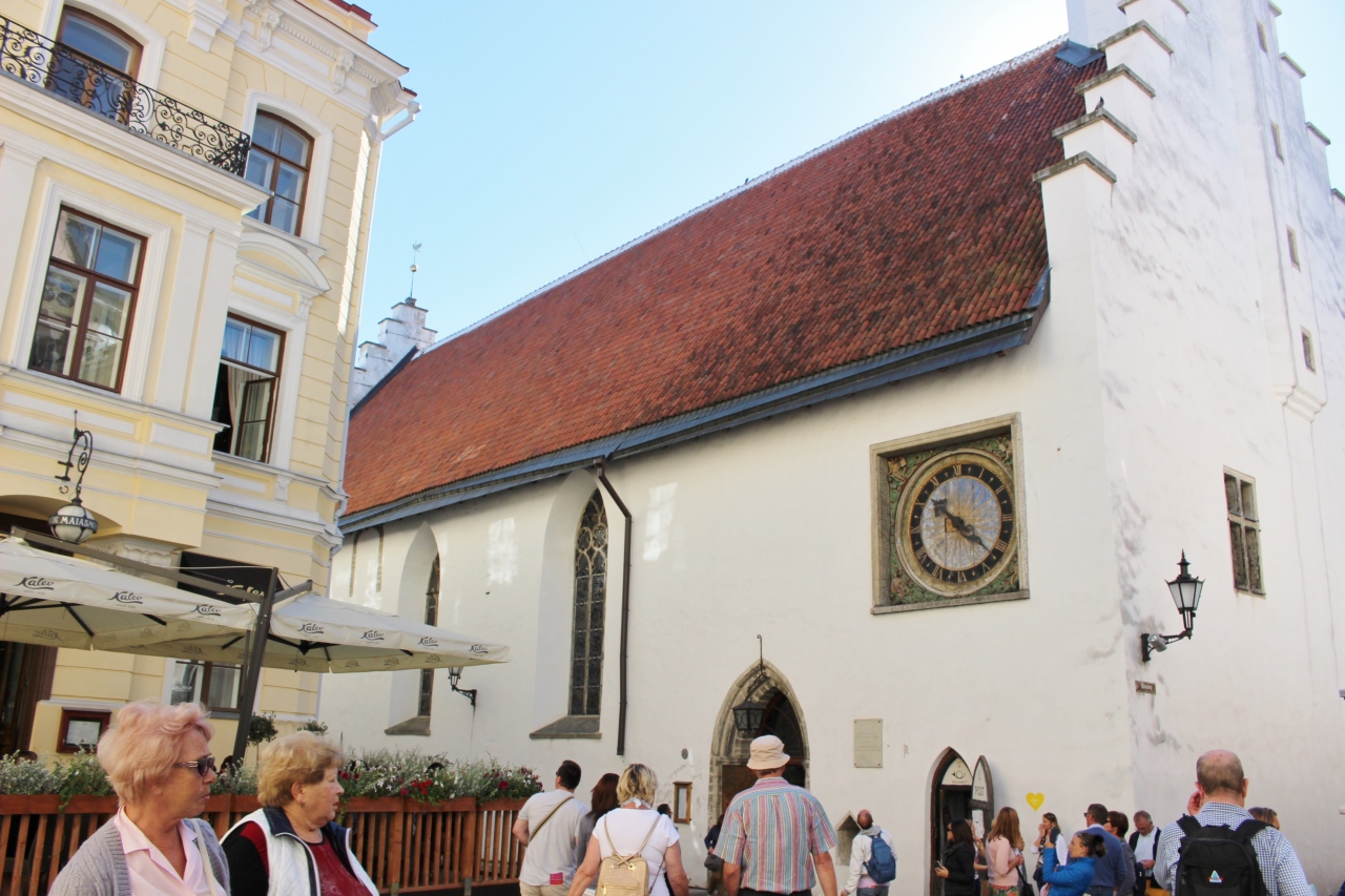 この教会は古い教会で、他の教会のように豊かな貿易商人の信仰で成り立っているのではなく、タリンの貧しい人々のための教会だったようです。尖塔のある建物も美しいですが、壁面に設置された、タリンで最初の高強度系もなかなか興味深かったです。