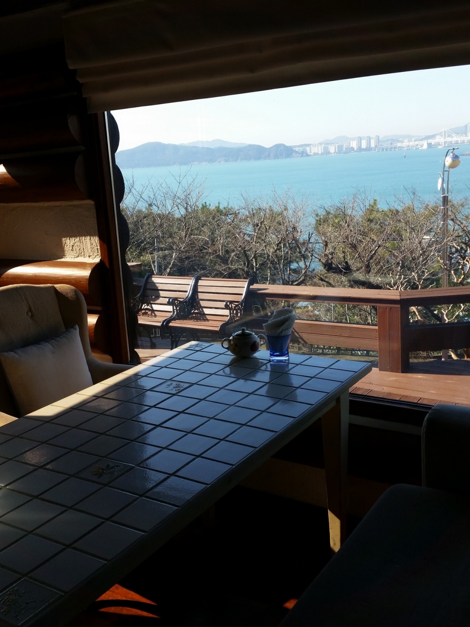 月見の丘へ散歩に行き、偶然見つけたお店でしたが、あとから調べたら有名店のようでした。平日の午前中とあってお客さんは私たちだけでしたが、落ち着いておしゃれな店内からは釜山の海が見渡せます。暖かい季節ならテラスでお茶や食事をするのもいいですね。