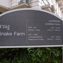 地下鉄サムヤーン駅をおりラーマ4世通りの北側にでます。チャムチュリー・スクエアという商業施設の横のオフィスビルをすぎ緑豊かな公園の中にスネークファームがあります。こちら週末の開館時間が午前中のみとなっているのでご注意ください。私は土曜日の午後に行き、そのままUターンする羽目になりました。