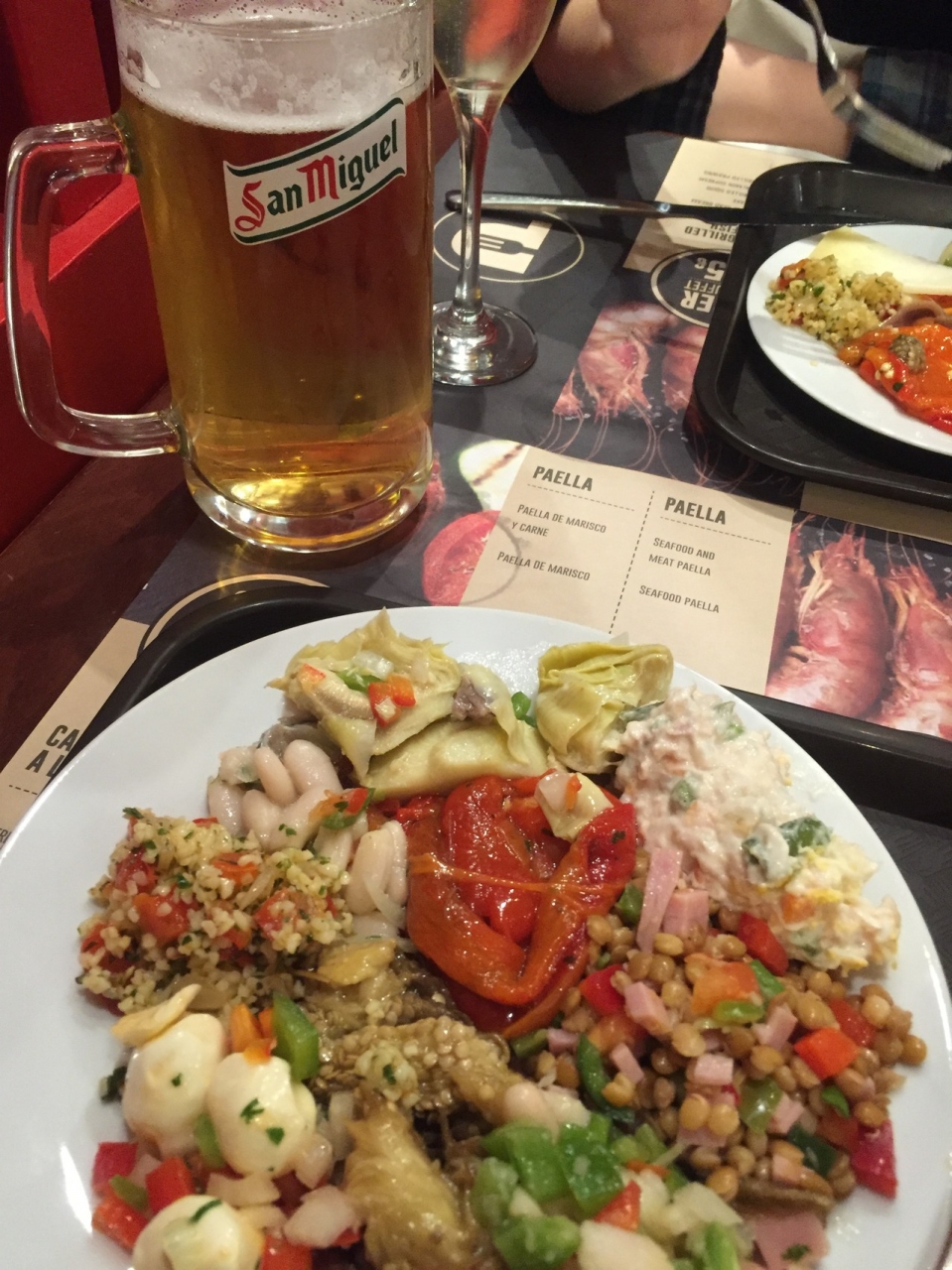 カタルーニャ広場のすぐ前に、新しいブュッフェレストランが出来ました!私が行った時は、3日前オープンとかで、しっちゃかめっちゃか。ガチャガチャしてる感じ。でも、スペイン名物のパエリア等、名物料理が色々食べれるので、旅行期間中に一度は行ってみるのがいいかも。割とどこでもビュッフェしてました!