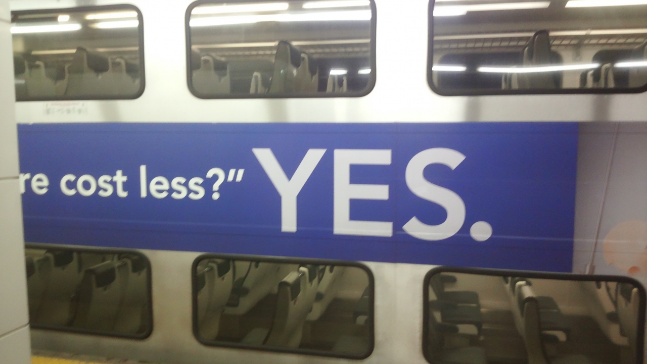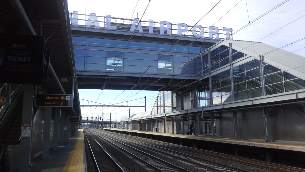 ニューアーク国際空港からペン・ステーションまで、NJトランジットの鉄道を利用しました。路線自体はアムトラックと同一ですが、運行母体が異なるようです。乗車時間は約30分で料金は13ドル、鉄道としては決して安くありませんが、バスやタクシーより割安で渋滞に巻き込まれるリスクもないので、利用価値は高いと思います。先頭が電気機関車、客車ほとんどが二階建てでした。