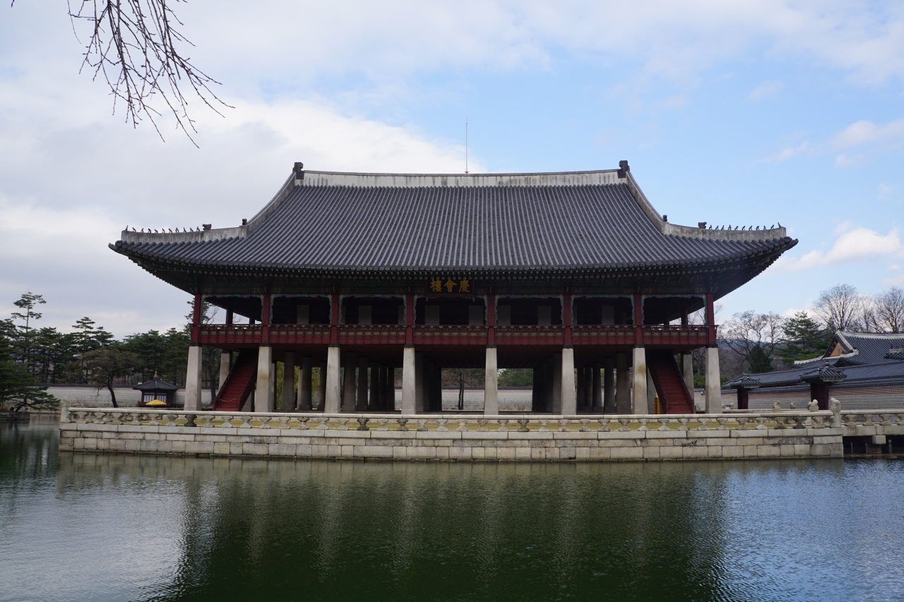 慶会楼(キョンフェル)は、王宮で宴を催すために造られた高床式2階建ての楼閣。正面に池があって、それがセットになって、一つの景観となっていますが、池は池、建物は建物といった静的な組み合せのような気もします。外から眺めるしかありませんでしたが、真価は中に入って見ないと分からないかもしれません。