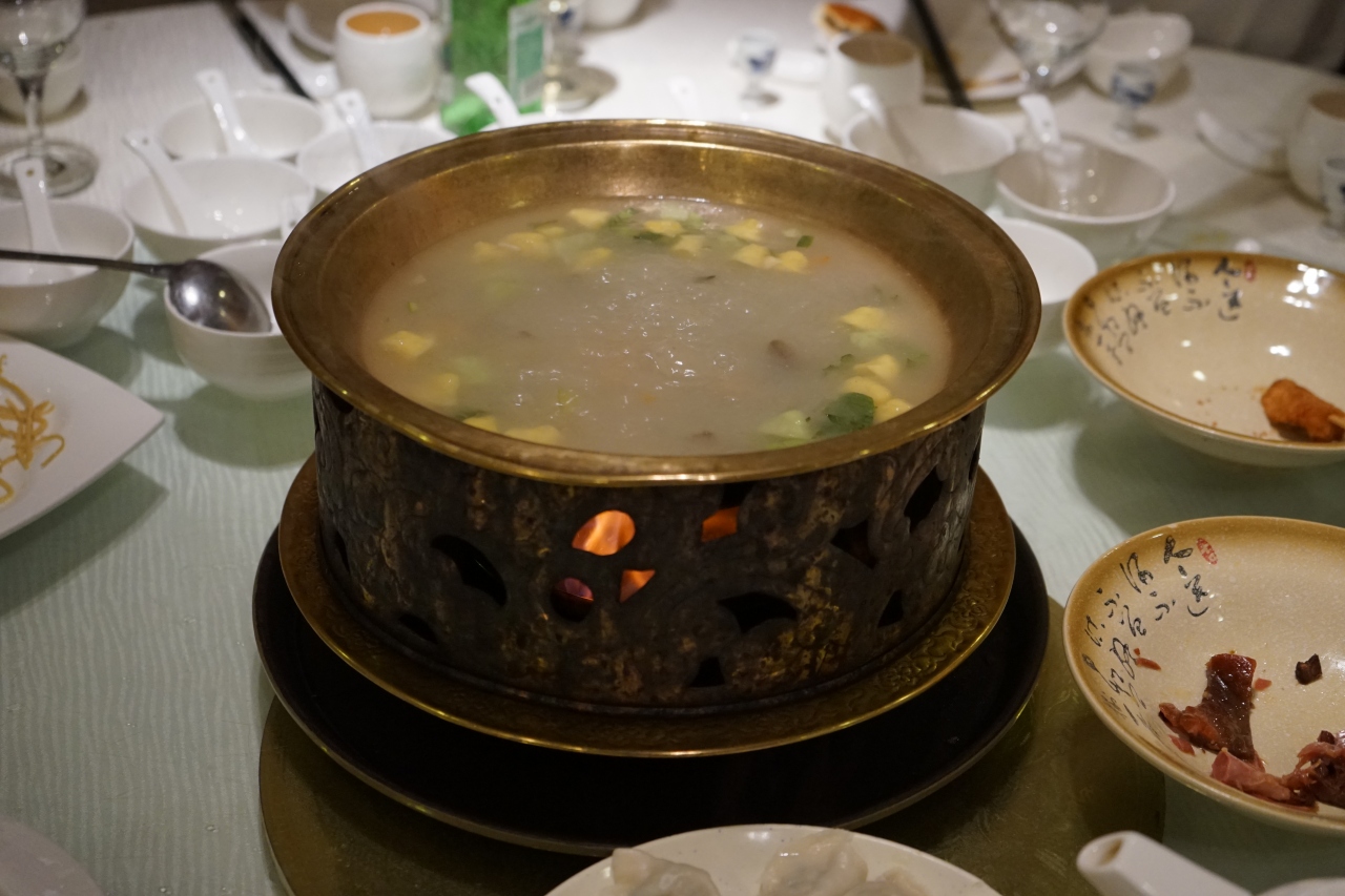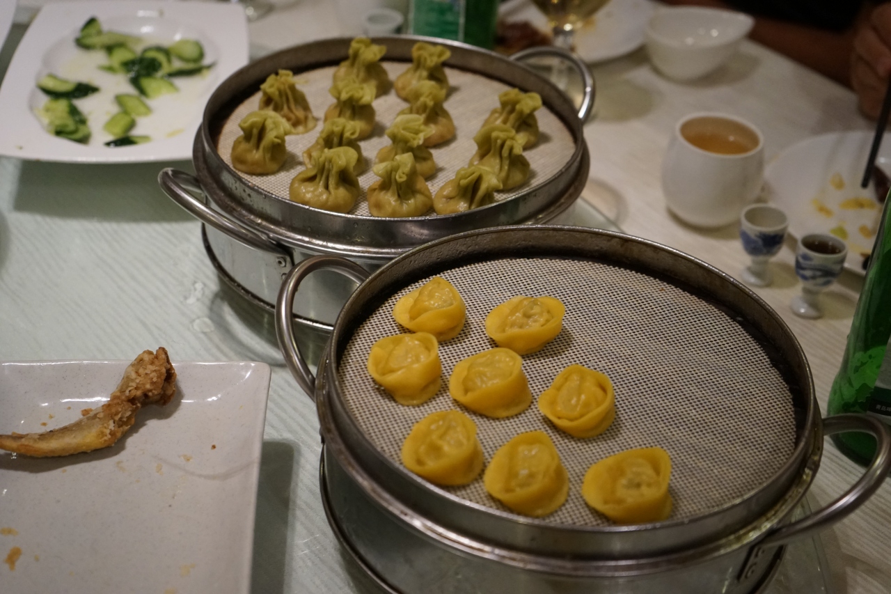ツアーのディナーで利用しました。西安は餃子が有名だそうですが、その中でも最も有名な餃子の名店が「徳発長」だそうです。「徳発長」には108種類の餃子があるそうですが、私たちが食べたコースでは16種類の餃子がでてきました。こちらは蒸し餃子がメインです。驚いたことに、くるみの形をした餃子の中にはくるみが、鳥の形をした餃子の中には鳥肉と細かな細工を施された形ででてきます。他に水餃子、焼餃子も出たのですが