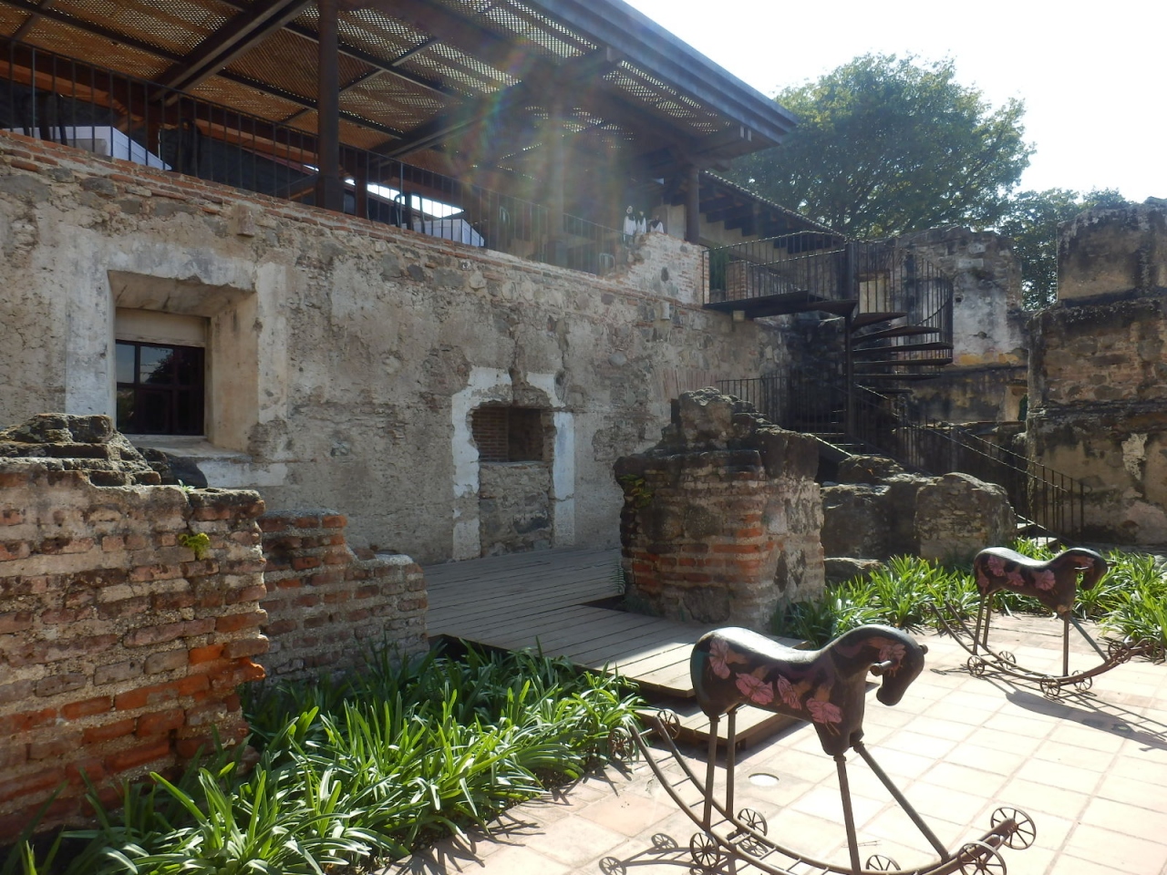 アンティグアにはいくつかの教会や美術館がありますが、こちらが一番楽しめました。ホテルの敷地内に遺跡があり、美術館も併設されていました。宿泊客ではないですが、ホテルの入口から入り、自由に見学出来ました。廃墟となった教会跡には調度品を展示されたエリアや遺骨が埋まる地下も見学出来ましたし、ガラス製品や現代アートの美術館も楽しめました。