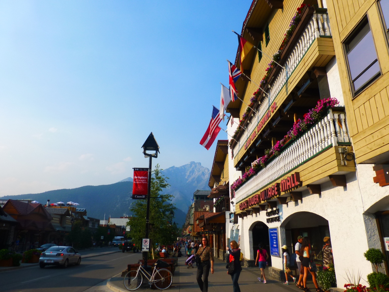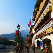オシャレな建物が澄んだ空気に溶け込んで、見上げると山が四方に見えて、カナディアンロッキーの街!って感じでワクワクです。