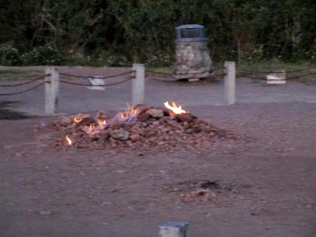 地下から出ている天然ガスが燃えている様子が身近に観察できます。炎は小さいですが、結構な熱は感じるので、火力はあるのでしょう。日没に合わせていきましたが、真っ暗な方が幻想的かもしれません。