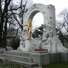 「ヨハン シュトラウス像」は「市立公園」のなかにある。どこにあるのかと適当に歩いていたが、金ぴかの像で目立っておりわかった。あったかい時なら観光客の写真スポットで賑わっているが、全く観光客はおらず余裕だった。