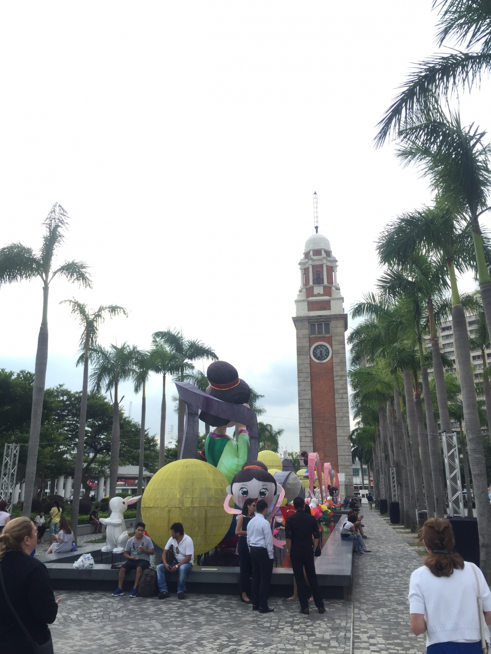 スターフェリー乗り場の目の前にある時計台。有名スターたちの手形があるエリアのすぐ近くなので、意識せずとも目にする方も多いと思います。時計台のあるエリアは公園になっており、市民の憩いの場のひとつとなっているようでした。