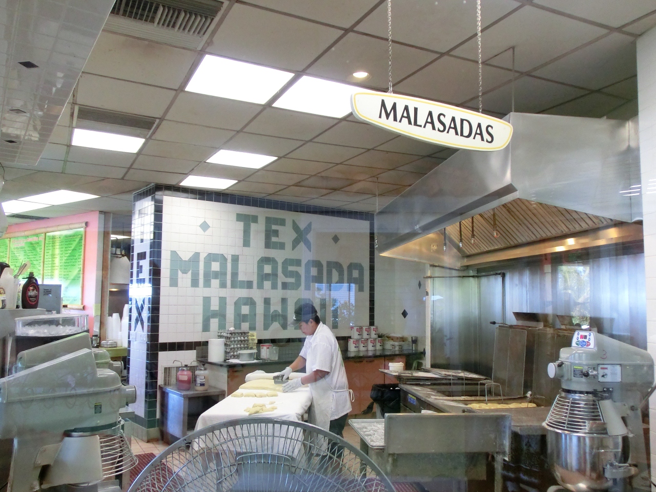 四角い形でとっも大きなマラサダを頂きました。すごいボリュームですが、揚げたてで、ふんわりモチモチ美味しかったです。地元の人もたくさんいて、ゆっくりした時間が流れています。少し高台にあるので、景色も最高です。
