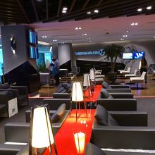 イズミール空港の国内線ターミナルにあるラウンジです。手荷物検査を終えて、左側へ歩いていくと、看板が出ているので、そこを右に曲がって、下の階へエスカレーターで降りて行きます。国内線ですが、広々としたラウンジで、フライトの時間になると案内があるので、ここからバスに乗って飛行機まで行けます。