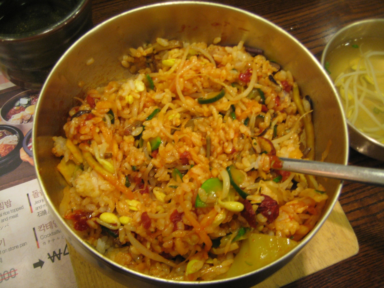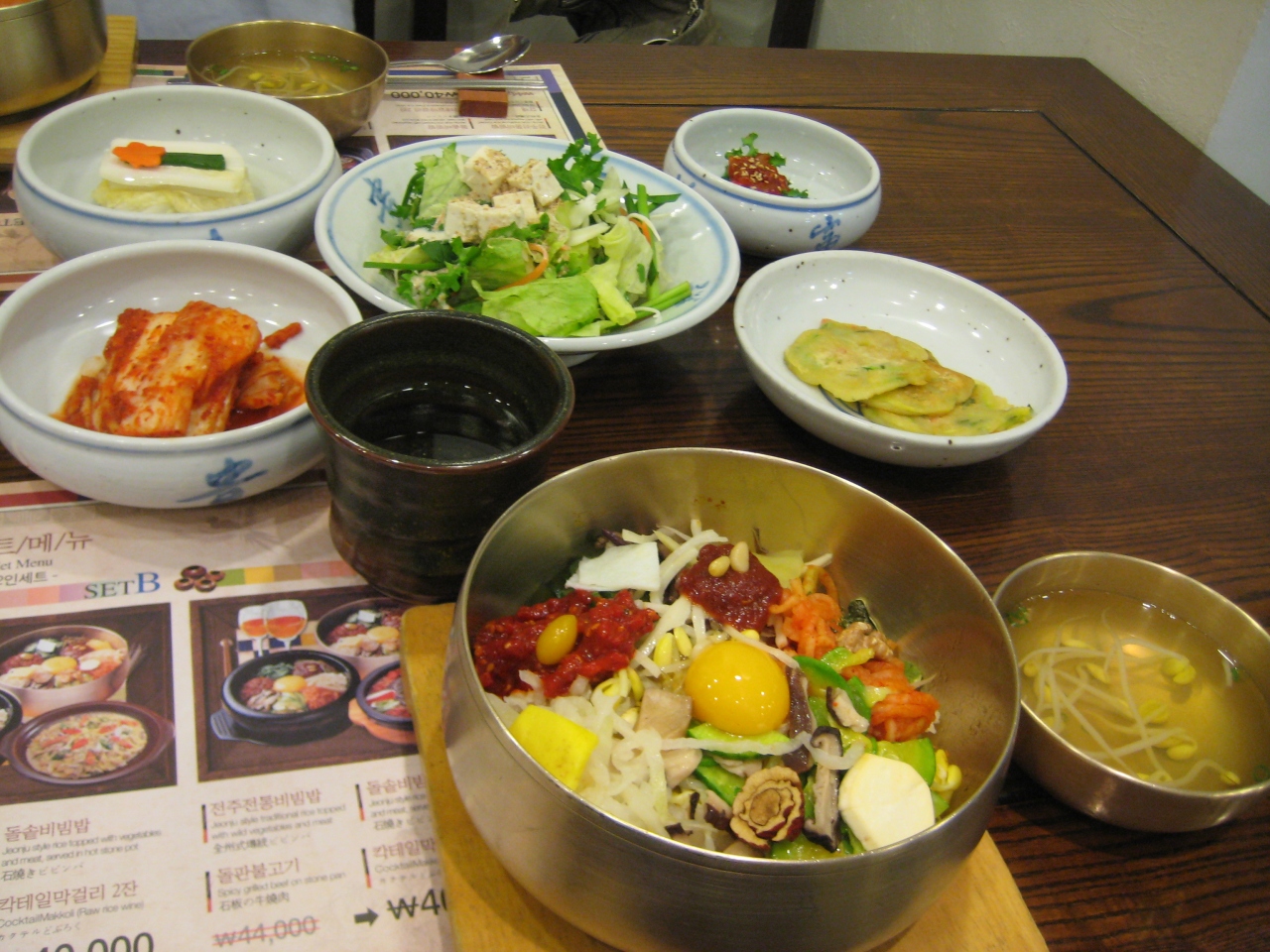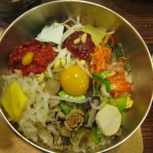 ビビンバ発祥の地、全州のビビンバを食べることができるお店。全州のビビンバは、石の器を焼いたものではなく、真鍮製の器を使ったもので、お米は牛スープで炊いてあります。ユッケ、全卵に加え、栗、ナツメ、くるみ、銀杏、松の実、ナムルが入っており、栄養のバランスもとれています。味をまとめるコツジャンは、辛すぎないので、混ぜるとちょうどよい味になります。