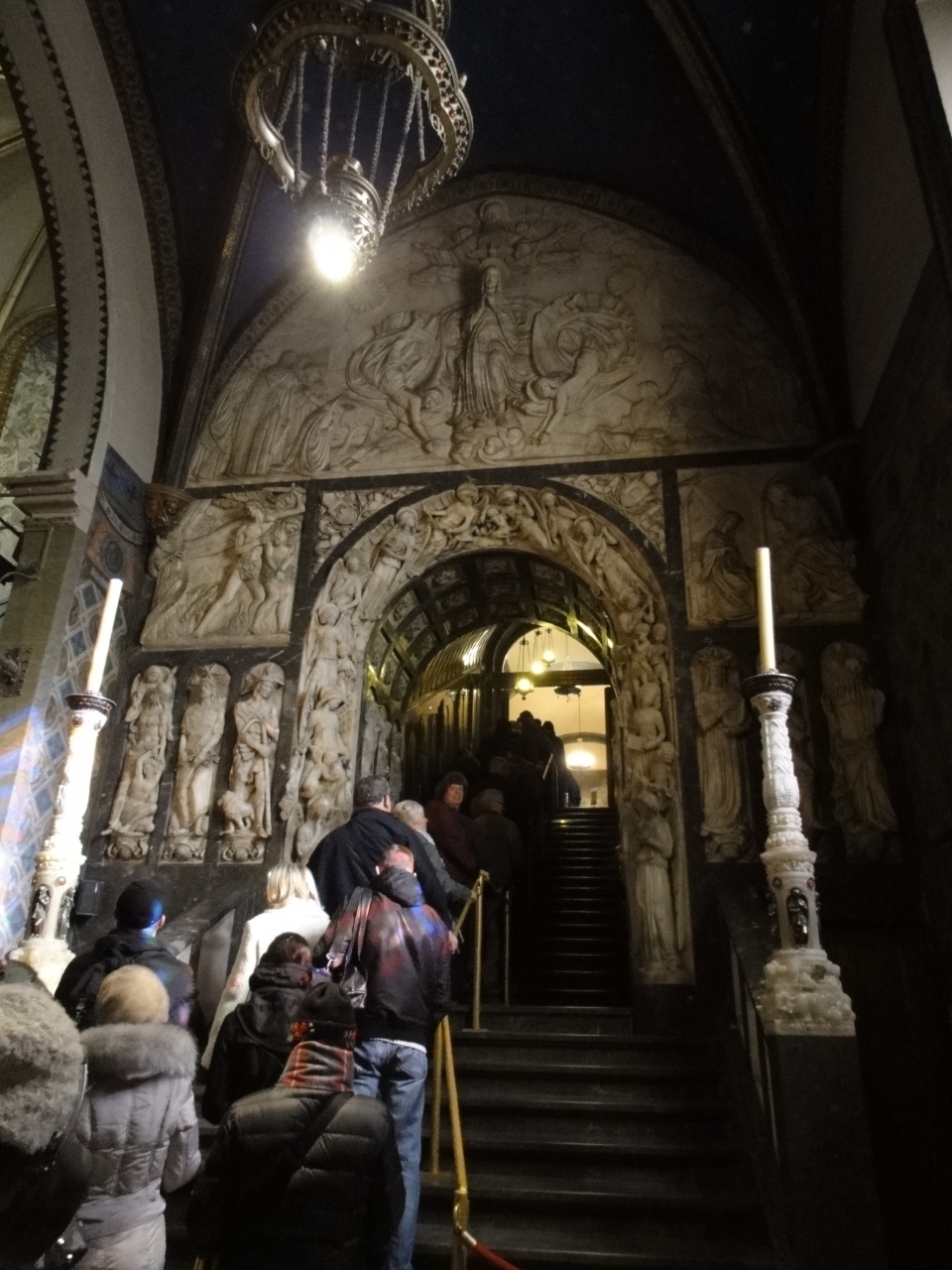 モンセラットの洞窟で発見された黒いマリア像。マリア様が手に持つ玉に触れながら、お祈りするとどんな願いも叶えてくれるいう説があり、すごい行列が出来ていました。願いがかなわなくても触れて間近で拝めるというだけでもありがたい聖母像です。