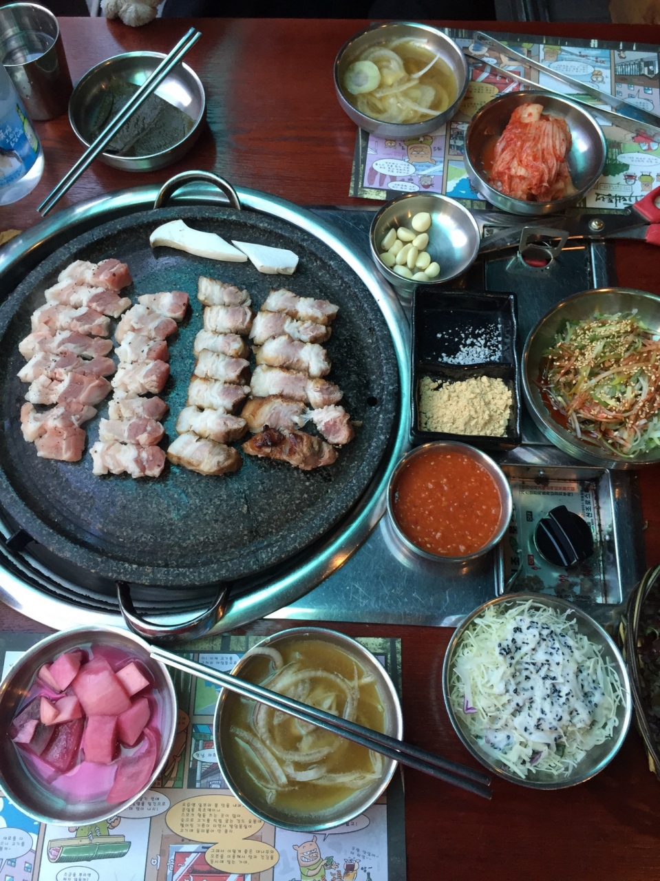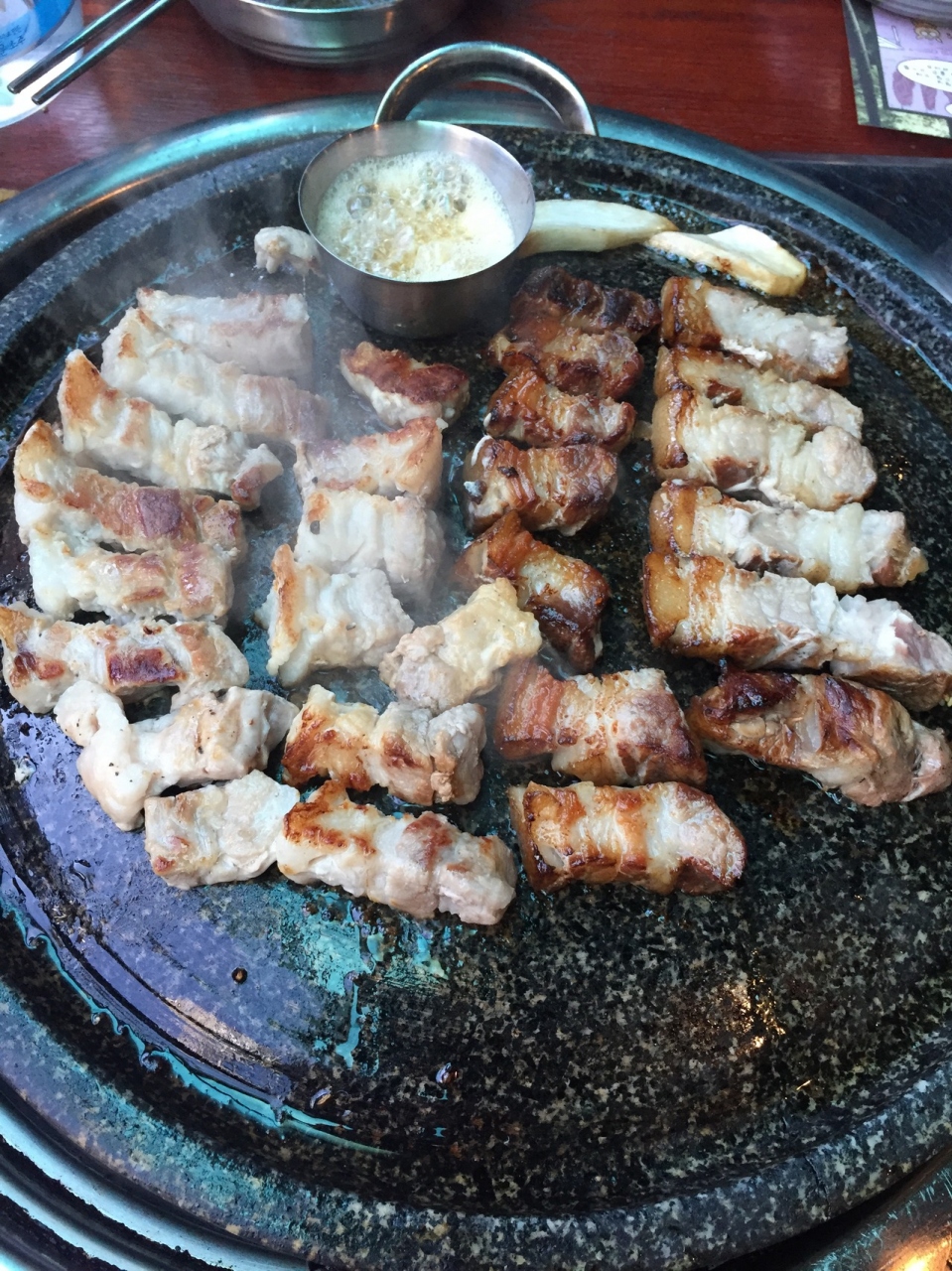 グイ(オーブンで焼いた)サムギョプサルとスクソン(3日間熟成)サムギョプサルをオーダーしました。どちらも美味しかったのですが、私も娘もスクソンの方が好みでした