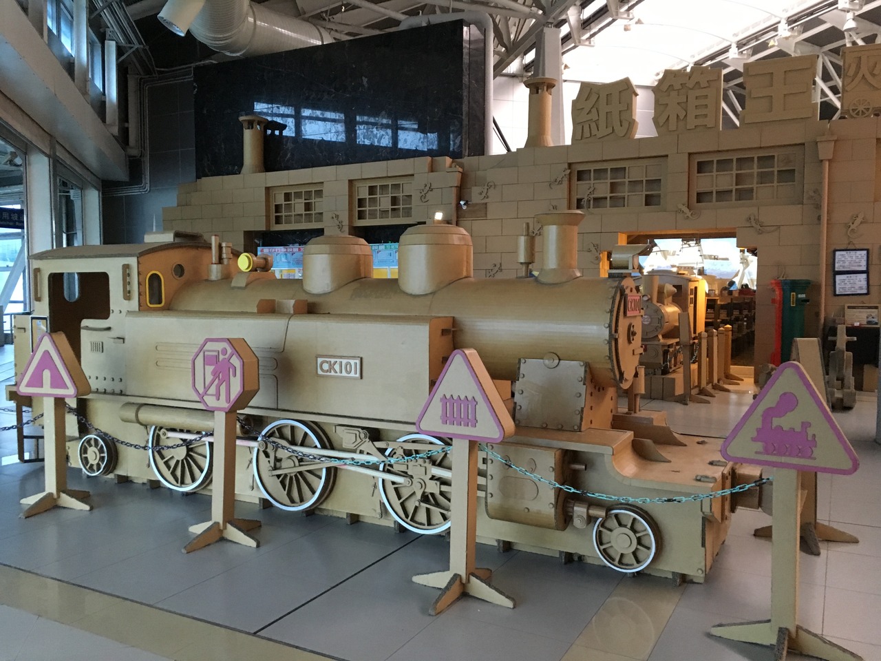 店外の構えからして段ボール作品で、コンコースにも